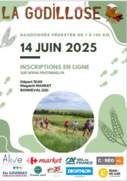 La Godillose est une randonnée pédestre de 125 km autour de Bonneval (28) suivant un circuit mi-chemin, mi-route qui change chaque année. Il est possible de s’arrêter à tout moment, la distance et l’allure de marche sont libres, selon les possibilités de chacun...