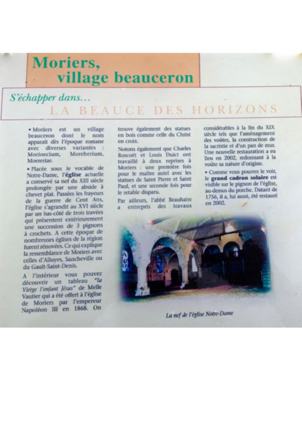 Située à 2,5 km de la N10 et à 6 km de Bonneval, traversée par la ligne T.G.V. Atlantique, Moriers est une petite commune à vocation essentiellement agricole.