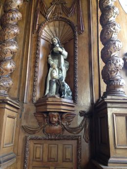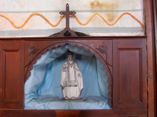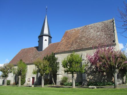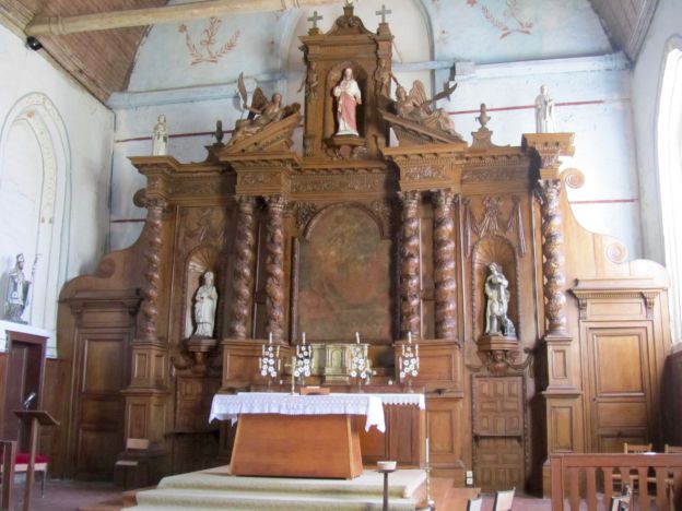 Eglise St Denis, avec nef romaine du XIIe siècle, retable en bois sculpté datant de 1669, et traces murales peintes.